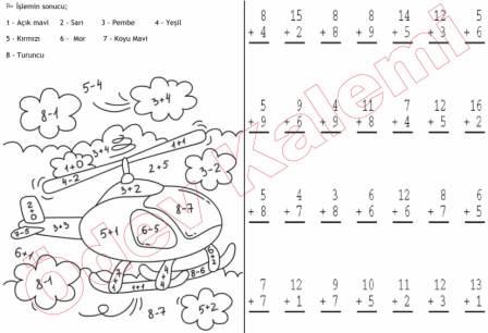 Odev Kalemi Toplama Islemleri Ve Boyama 1 Sinif Matematik Dersi