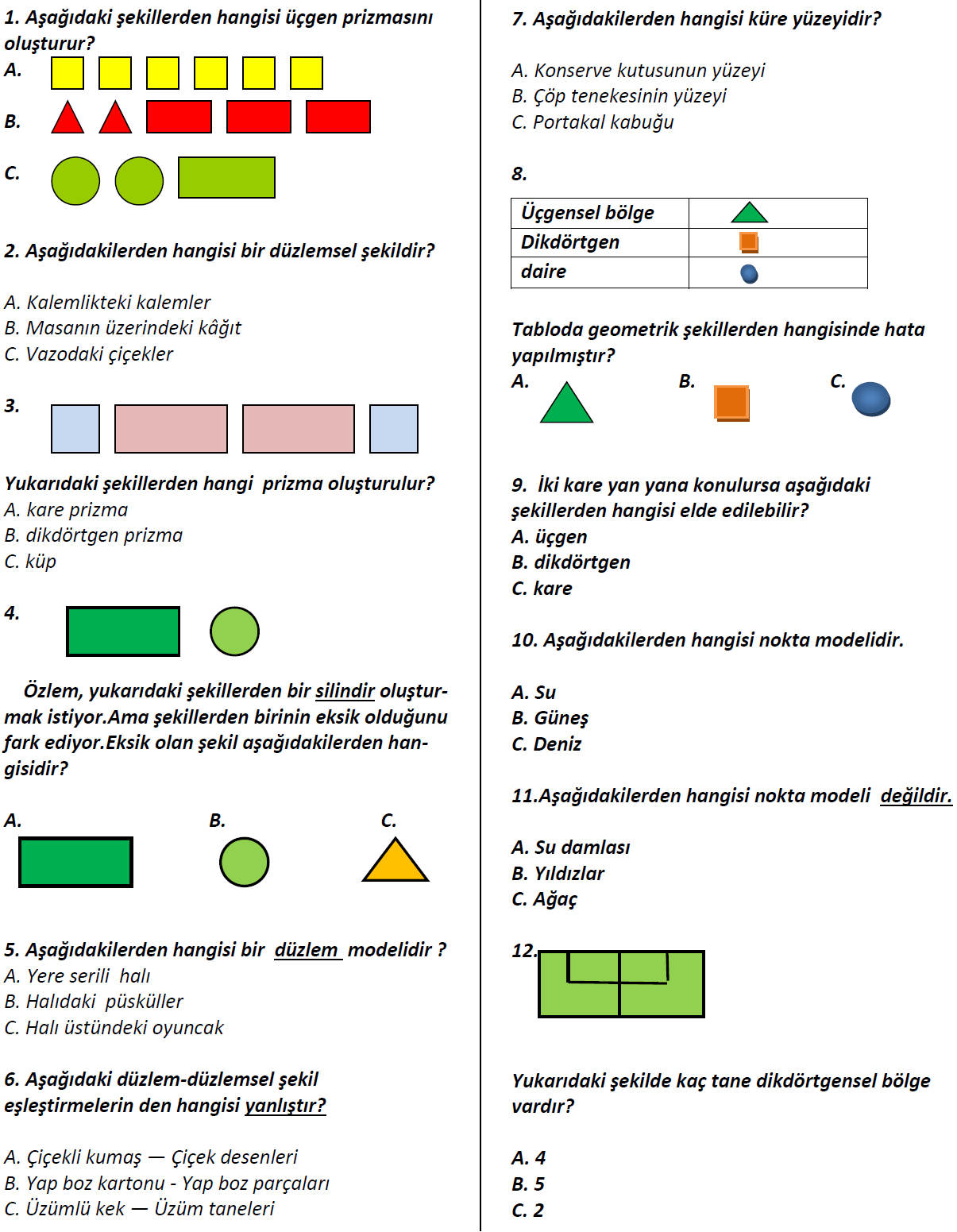 2012 2013 1 Sinif Matematik Geometrik Cisimler Karti Indir 1