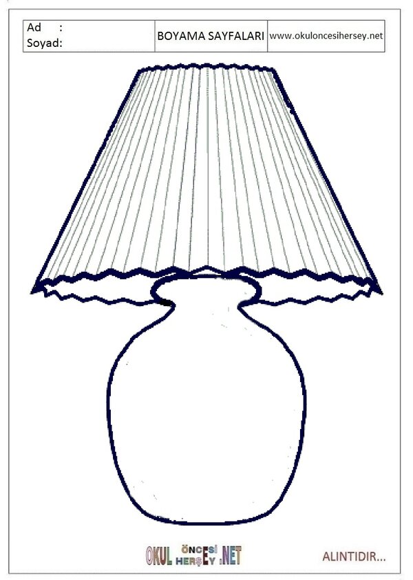 Cocuklar Icin Abajur Esyalar Boyama Sayfasi 6 Preschool Activity