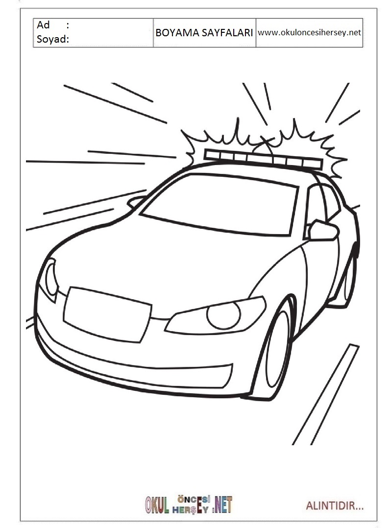 Polis Arabasi Boyama Sayfasi Okuloncesitr Preschool
